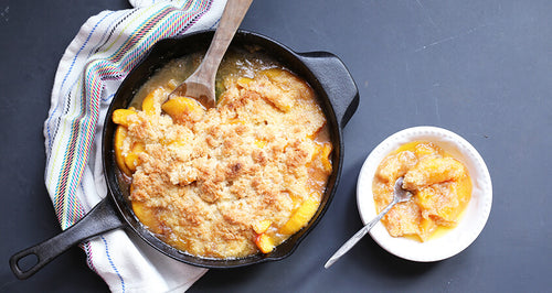 The topping to this cobbler is softer if you eat it warm, but if you let it cool or chill it in the refrigerator and then serve it at room temperature, it's more solid and holds together even more like a traditional cobbler would with a biscuit topping. I highly recommend making this the night before, then refrigerating it to enjoy the next day, but I know that's a tough thing to do!