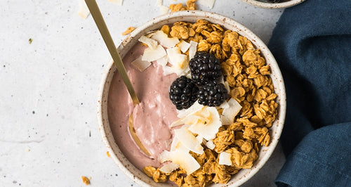 Try it in a smoothie bowl (simply serve in a bowl!) with some berries, toasted coconut flakes, and crunchy granola!