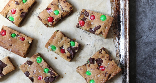 I added a holiday touch to these brownies by also including red and green M&Ms, but you could absolutely use whatever colors you like!
