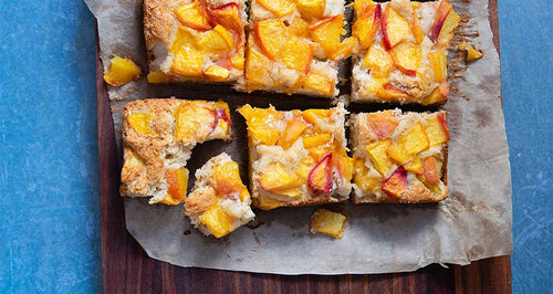 I made it with peaches here, but I've also tested it with blueberries and even a cooked-down strawberry mixture – any fruit works or none at all.